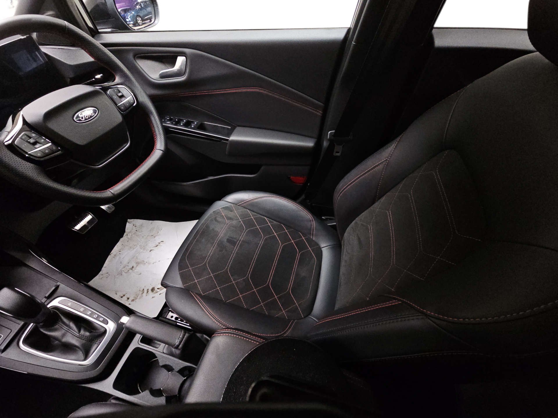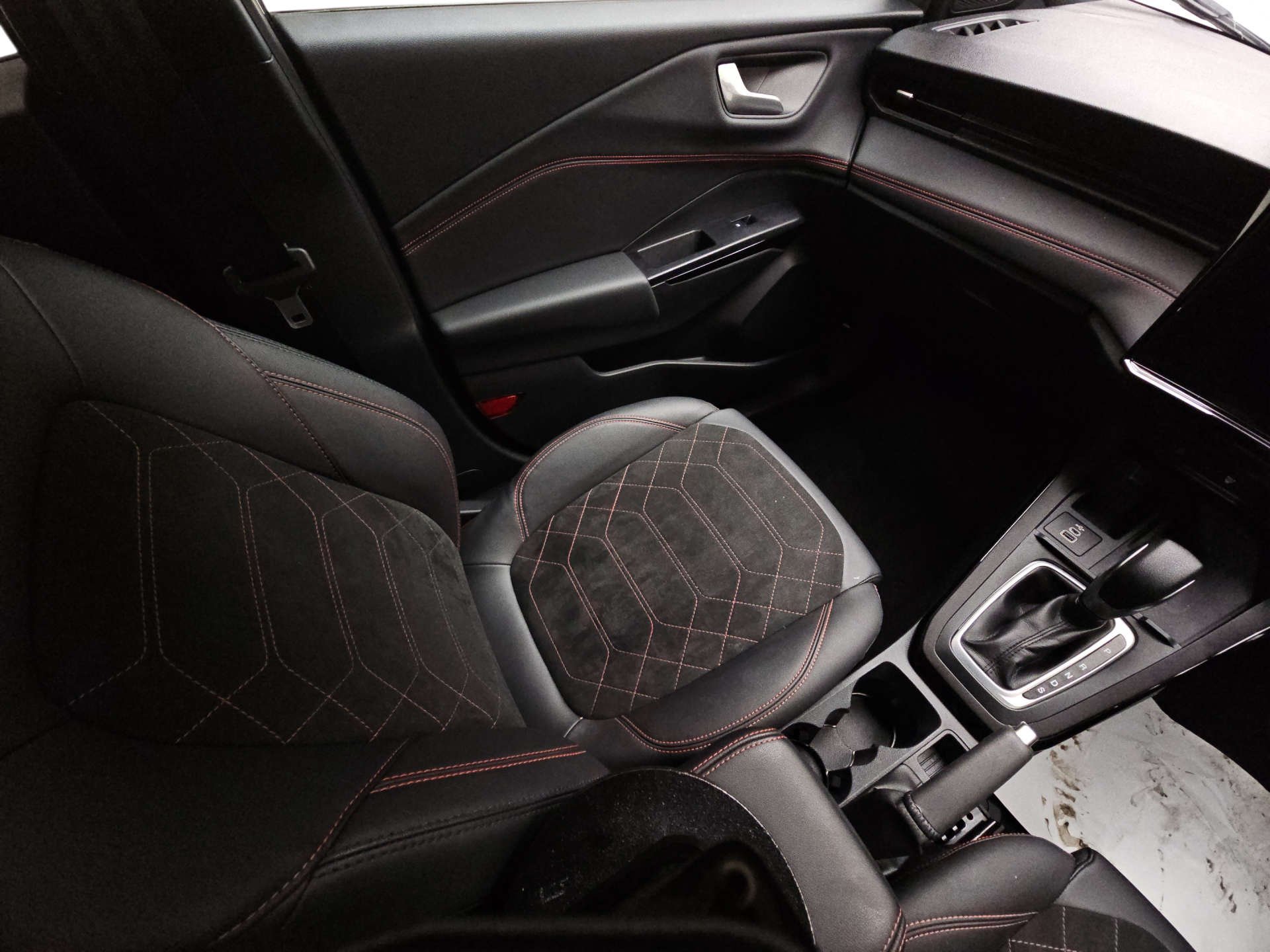 Finished in a sleek Agate Black, the Ford Puma exudes sophistication and modernity. Its striking exterior is perfectly complemented by the premium synthetic leather interior, featuring synthetic suede inserts and eye-catching red stitching. This combination not only enhances the aesthetic appeal but also ensures a comfortable and luxurious ride every time you get behind the wheel.